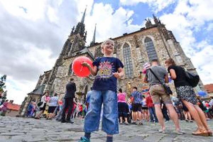 (ik) – 240 modrých, bílých, žlutých a červených balónků vzlétlo dnes v 11 hodin z Petrova, tedy z vrchu před katedrálou sv. Petra a Pavla.