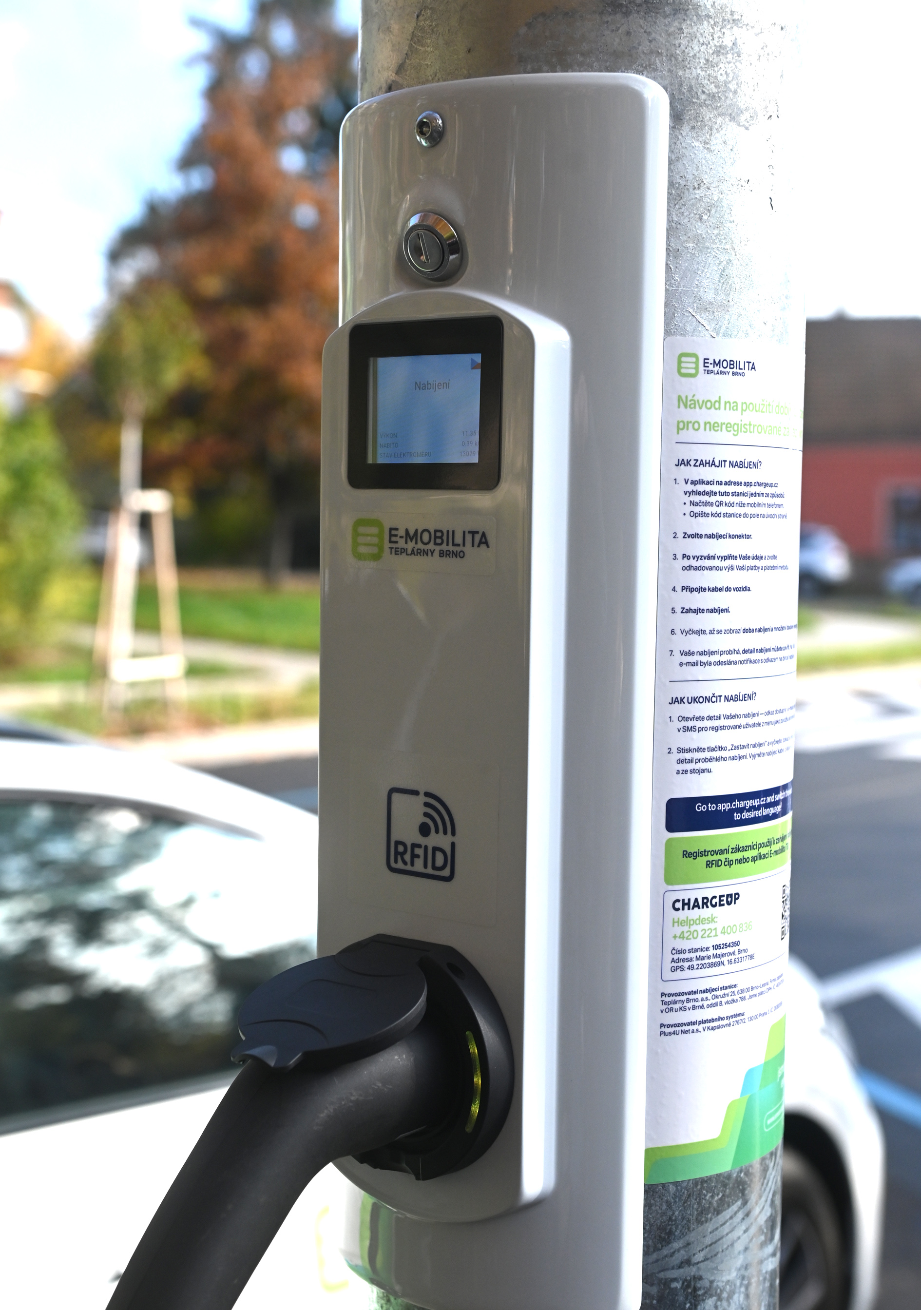 V řadě stožárů veřejného osvětlení v brněnské ulici Marie Majerové přibyl jeden, který zcela mění pohled na městskou infrastrukturu. Sloup s číslem S-0627-021 před mateřskou školkou totiž skrývá dobíjecí stanici pro elektromobily. Jedná se o vůbec první zařízení svého druhu v České republice, které není připevněno na povrchu, ale je instalováno uvnitř speciálně upraveného tubusu sloupu.