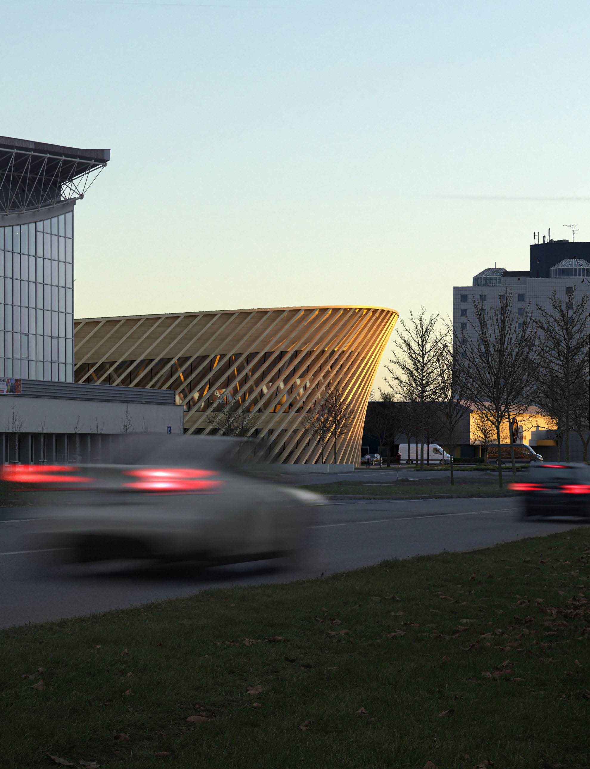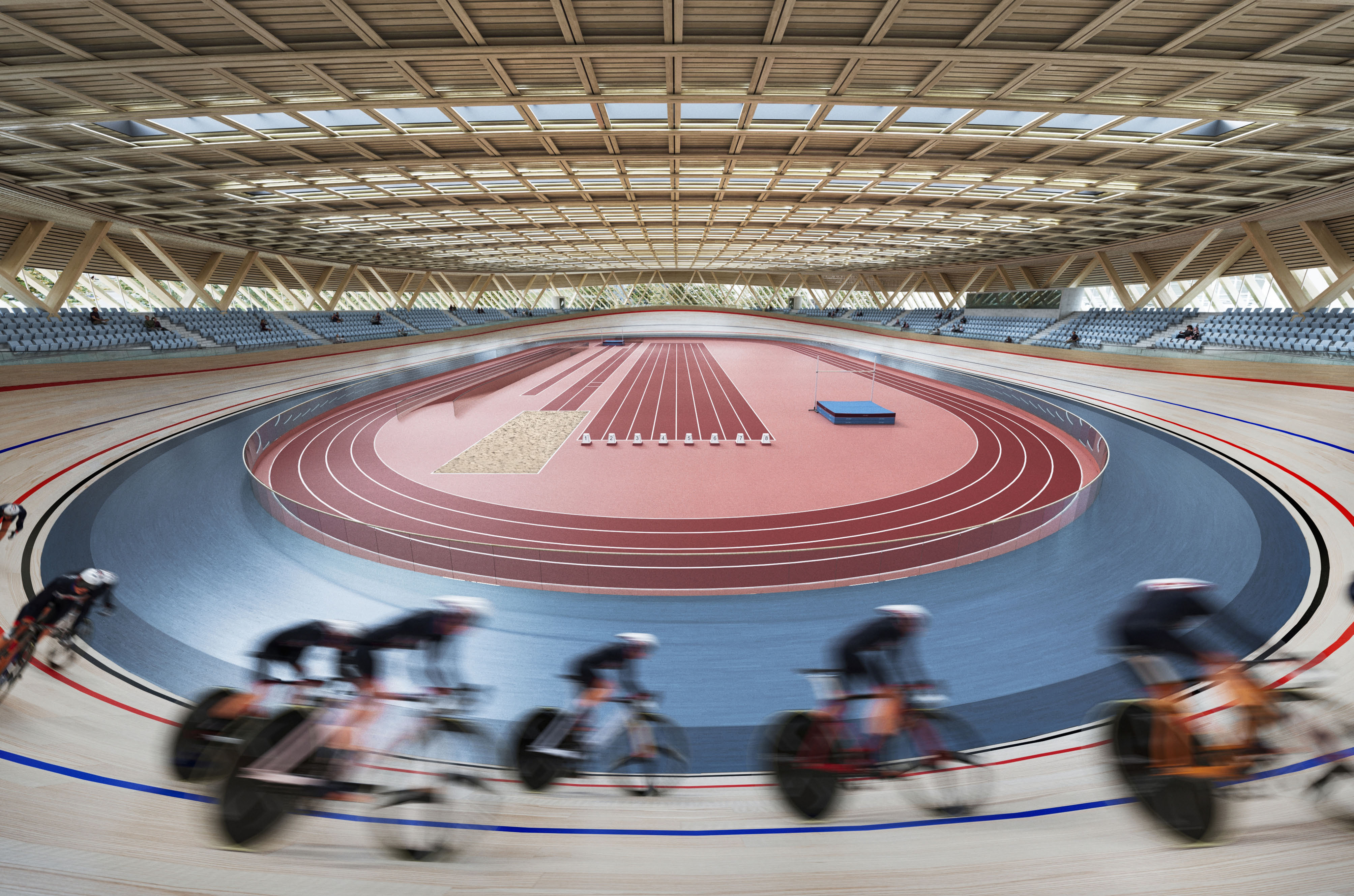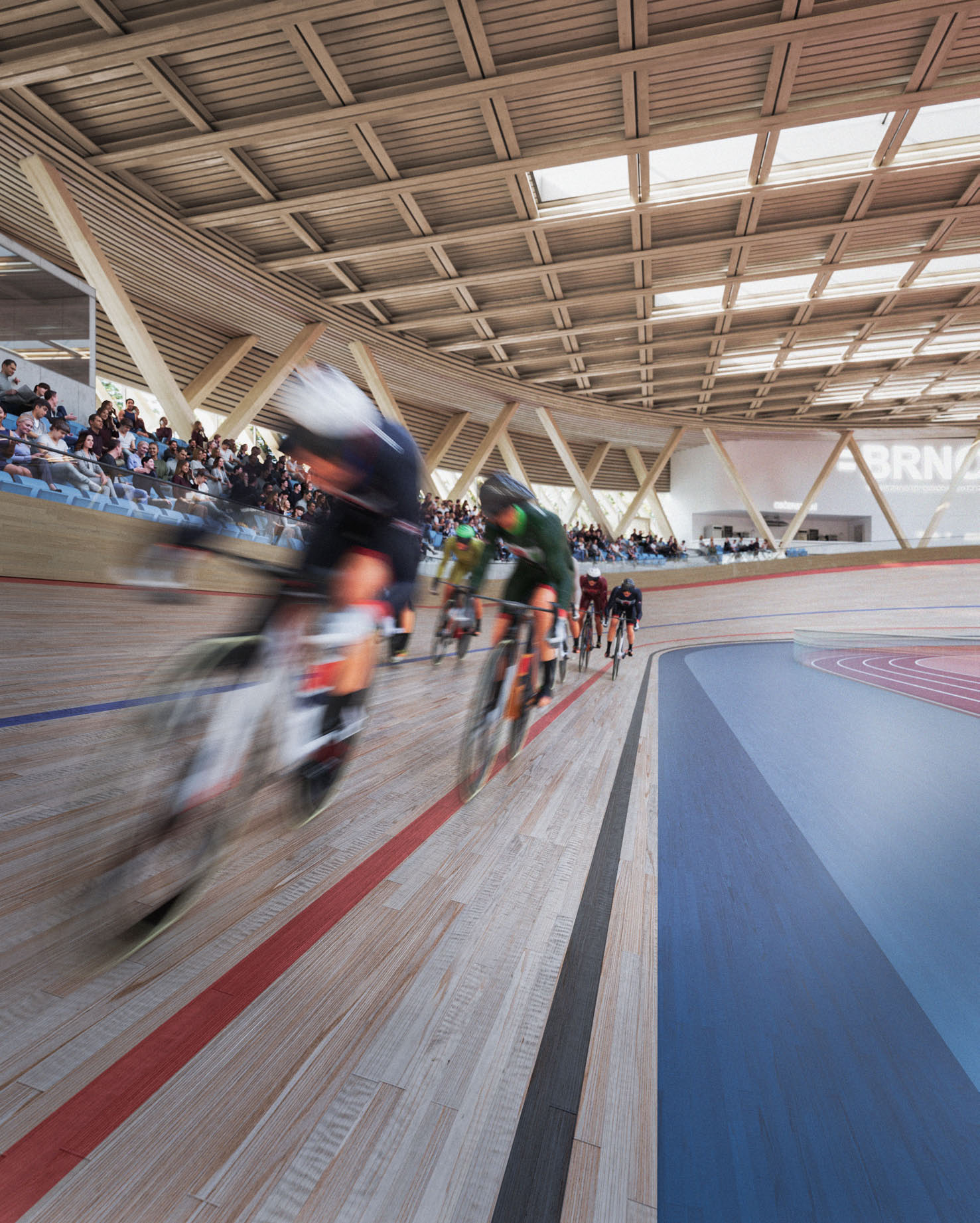 „Vítězná podoba haly počítá se solitérním domem s výraznou vnější geometrií, jenž bude propojený s parkem. Využije se celodřevěná konstrukce s lamelovou fasádou a střecha, jejíž křivka kopíruje samotnou cyklistickou dráhu. Areál tedy bude vedle sportovní funkce plnit i tu estetickou a bezpochyby pozvedne celkový ráz lokality,“ připomněla primátorka Markéta Vaňková.