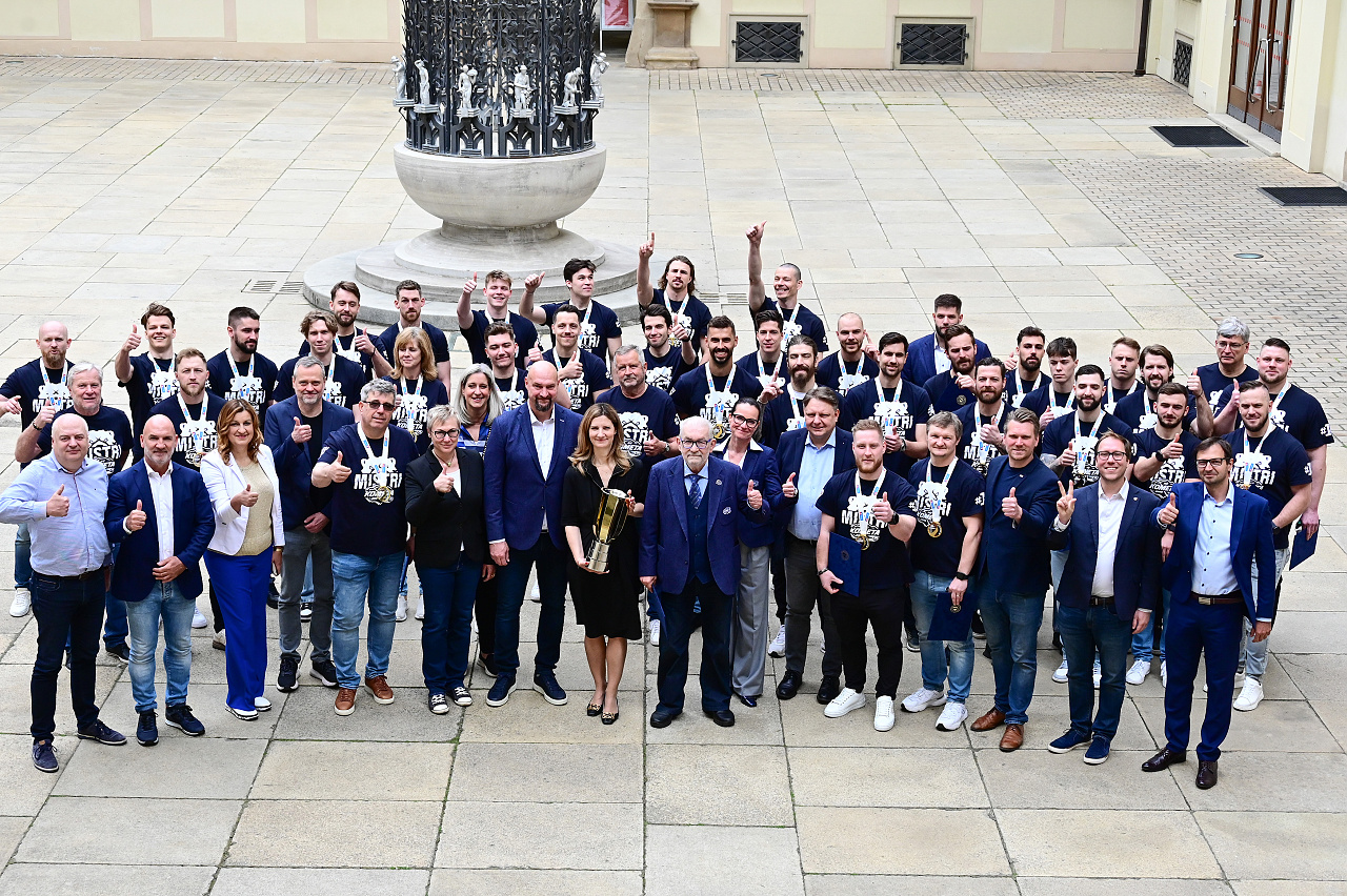 Primátorka Markéta Vaňková spolu s dalšími brněnskými radními pozvali hráče i realizační tým na slavnostní poděkování, které se odehrálo v Rytířském sále Nové radnice.