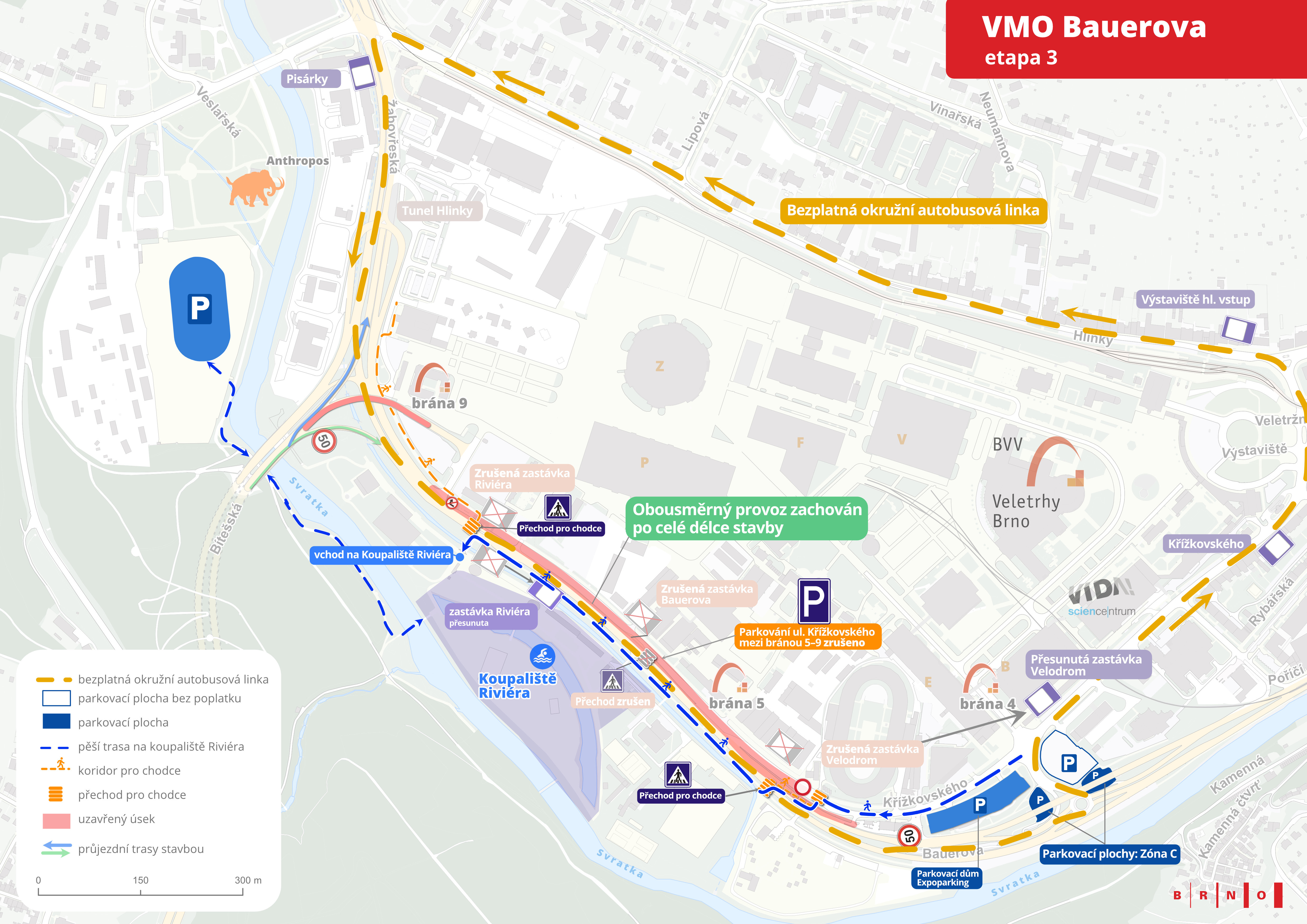 Letošní sezónu na koupališti Riviéra ovlivní práce na Bauerově. Jelikož v souvislosti s budováním velkého městského okruhu zcela zanikla parkovací stání v této ulici, snaží se zástupci města hledat jiné alternativy. Návštěvníci koupaliště mohou nově zaparkovat svá vozidla na odstavné ploše ve sportovním areálu za Anthroposem. Zpřístupněna bude od 19. června po celou letní sezónu. Nyní se pracuje na jejích úpravách.