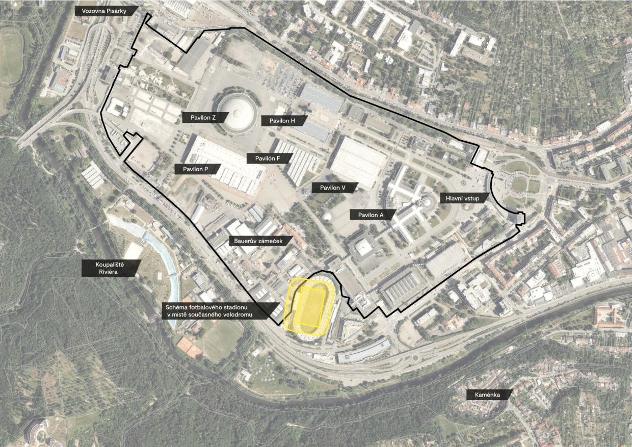 „Kancelář architekta města Brna prověřovala možnosti umístění fotbalového stadionu, atletické haly a velodromu v celkem 9 vytipovaných lokalitách na pozemcích města, které co nejvíce odpovídají návrhu nového územního plánu z června 2022. Vybudování nového fotbalového areálu v místě současného velodromu bylo vyhodnoceno jako varianta s převažujícími pozitivy,“ řekl radní města Brna pro sport Tomáš Aberl.
