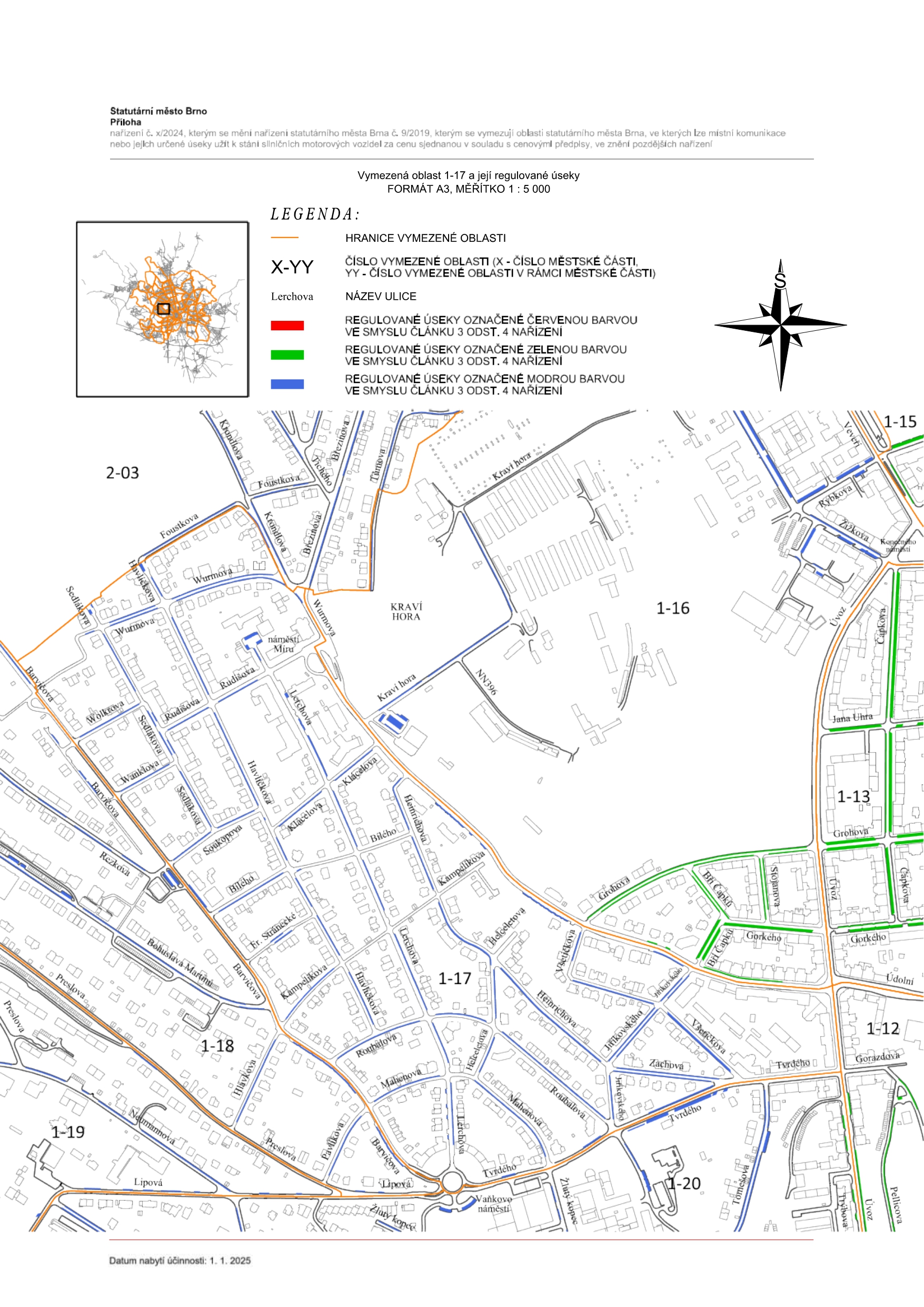 Aktualizované mapy dotyčných úseků, které začnou platit od 1. ledna 2025, najdete v přiloženém dokumentu. Kompletní informace o rezidentním parkování jsou pohromadě na webu www.parkovanivbrne.cz.