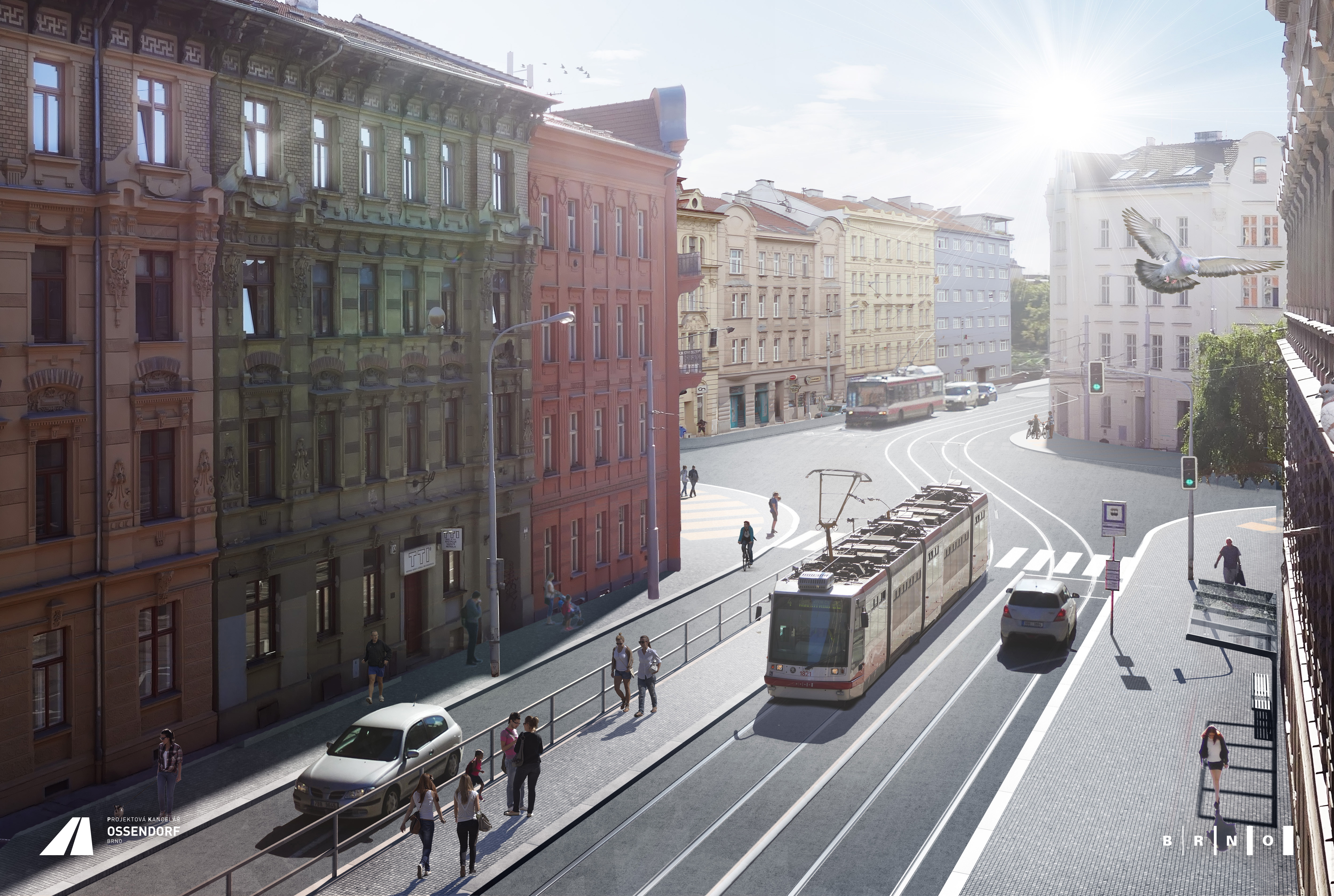 Sdílená zóna je nově zvoleným postupem. Začínat a končit bude v křižovatkách okolo zastávky Obilní trh. „Původně se na Obilním trhu ve směru z centra počítalo s vytvořením tzv. polovídeňské zastávky, ale to nakonec nebylo kvůli složitým kolaudacím jiných akcí možné. Proto se zastávka musela řešit množstvím zábradlí, samostatných pruhů a celkově uživatelsky ne úplně příjemně. Dohodli jsme se, že po vydání stavebního povolení budeme hledat jinou cestu – a ta se nabídla v podobě nově legislativně povolené sdílené zóny, se kterou již máme zkušenosti z přednádražního prostoru. I pro tuhle lokalitu se jeví jako velice vhodná, a co víc – změny stavebního řešení oproti schválené dokumentaci budou naprosto minimální. Projednání tohoto návrhu musí být ještě dokončeno, ale všechny strany jsou mu nakloněny,“ doplnil 1. náměstek primátorky města Brna René Černý.