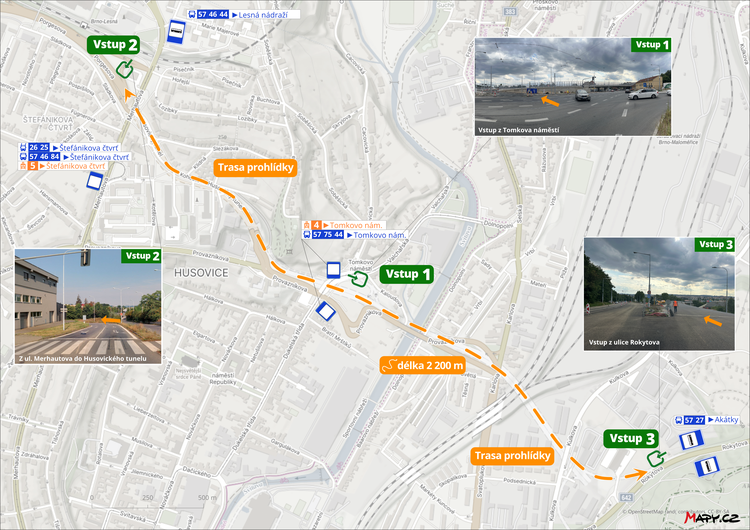 Na estakádu se dostanete ze tří stran – hlavní bude přístup z Tomkova náměstí ze směru od ulice Valchařské. Další přístupy jsou z obou konců úseku VMO, tedy z Rokytovy ulice a z Lesné od vstupu/vjezdu do Husovického tunelu. Na akci nejsou připraveny parkovací plochy, využijte proto městskou hromadnou dopravu.