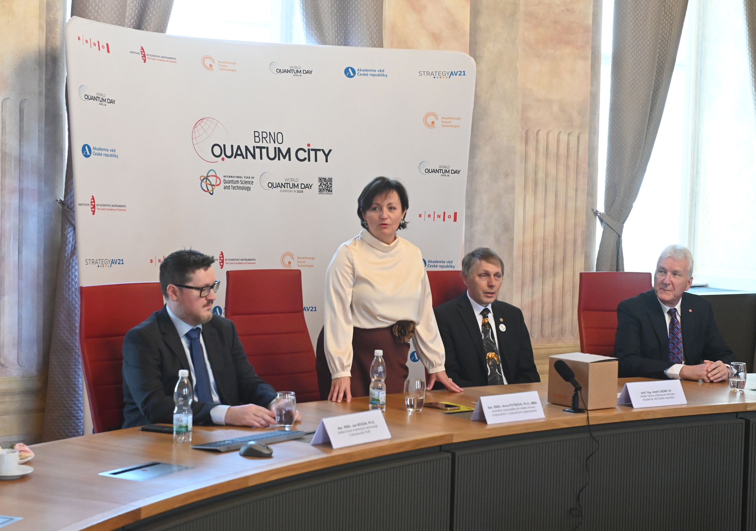 „Svět částic menších než atom je tak odlišný od toho, co známe z běžného života, z fyziky kolem nás, že může působit až strašidelně. Běžně uplatňované zákony zde neplatí, částice se vyskytují současně ve více stavech, vše se děje pouze na základě pravděpodobnosti a pozorování mění výsledek,“ podotkla zastupitelka pro oblast spolupráce s výzkumnými organizacemi Anna Putnová a navázala: „A díky tomu jsme schopni skenovat lidské tělo pomocí magnetické rezonance, jezdit superrychlými vlaky nebo používat laser v průmyslových odvětvích. U všech těchto vynálezů byla využita kvantová fyzika a její rozvoj patří k největším úkolům budoucnosti. Mezi dalšími metami najdeme kvantové počítače. V České republice se právě sestavuje první kvantový počítač s názvem VLQ – v superpočítačovém centru Vysoké školy báňské – Technické univerzity Ostrava.“
