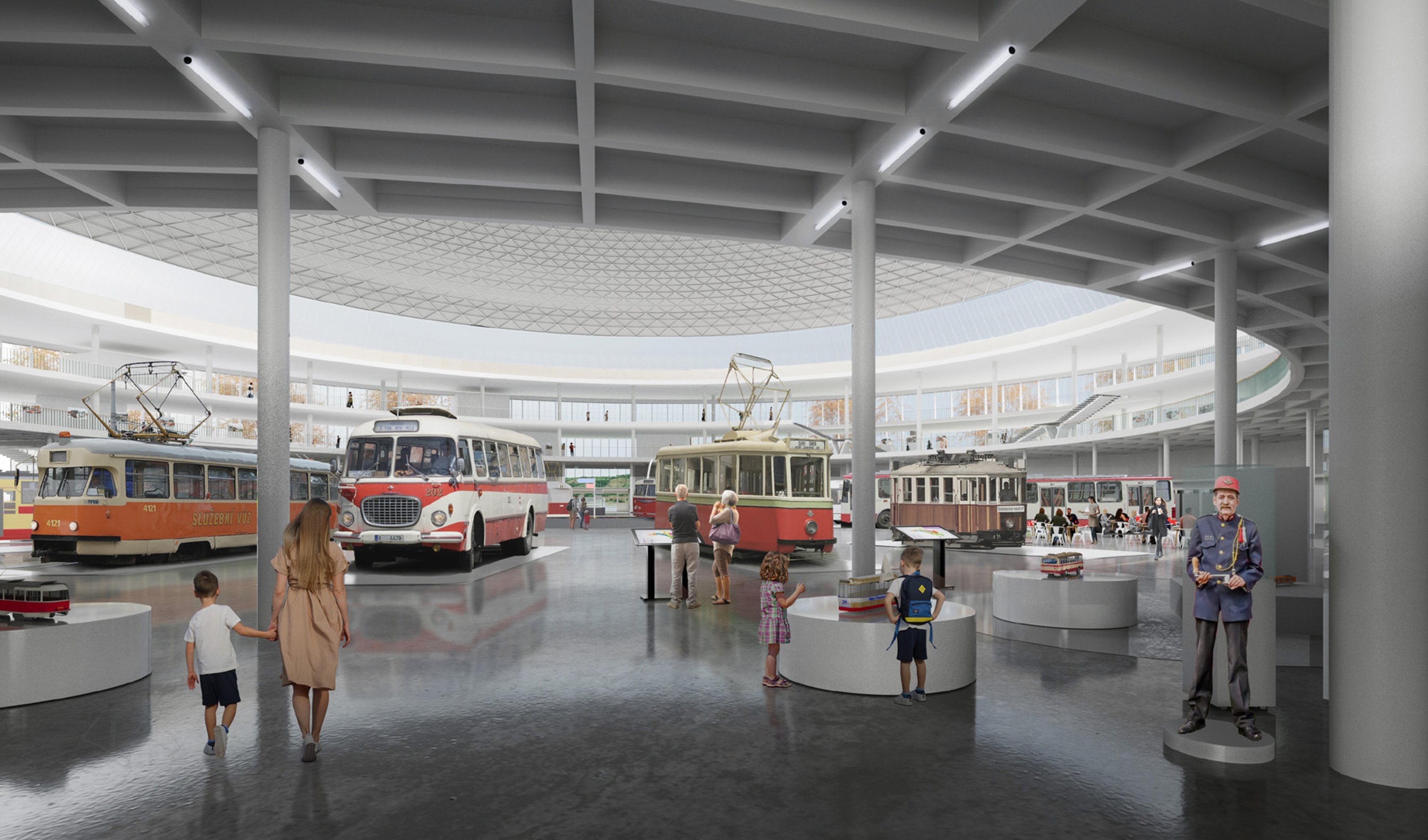 Podle ideové studie by byly vozy vystavené v přízemí pavilonu po obvodu kruhu. Ve dvou nadzemních galeriích by pak byla umístěna stálá expozice artefaktů vztahujících se k historii městské hromadné dopravy a také dočasné tematické výstavy. Studie počítá i se zahrnutím technické infrastruktury města.