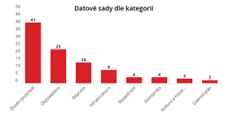 Ve zmiňované stovce je 41 datasetů z oblasti životního prostředí, 23 z oblasti obyvatelstva, 14 z dopravy, 9 z technické infrastruktury, 4 se týkají bezpečnosti, 4 ekonomiky a trhu práce, 3 kultury a historie a 2 hovoří o územním plánu.