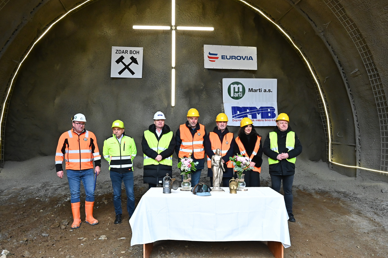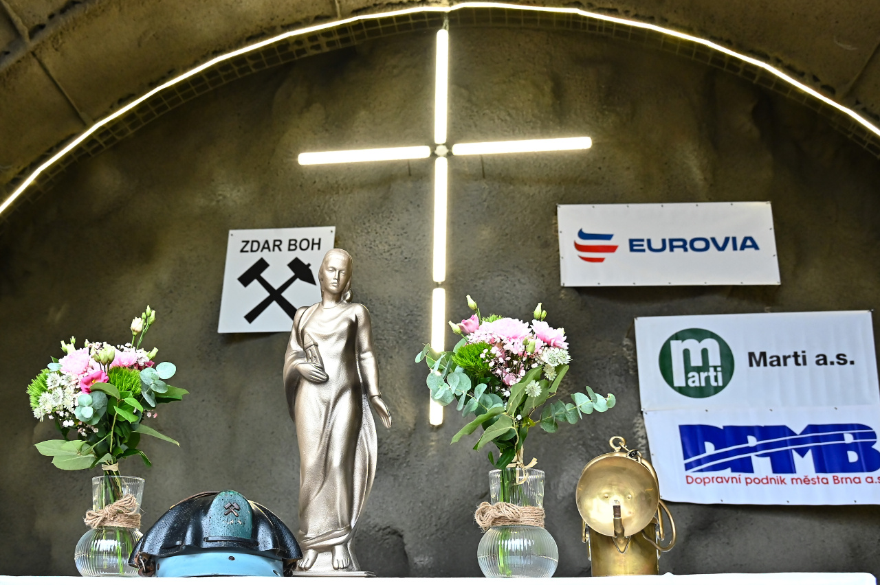 „Po přípravných terénních pracích je nyní vše připraveno k samotné ražbě tunelu. Dnešní umístění sochy svaté Barbory nad portálem tunelu je důležitým symbolickým gestem. Svatá Barbora jakožto patronka horníků a důlních objektů bude dohlížet nejen na bezpečný průběh ražby, ale i na všechny, kteří budou tunel využívat,“ řekl Petr Kratochvíl, radní města Brna pro dopravu, a dodal: „Socha je vysoká 51 centimetrů, váží 10 kilogramů, je vyrobena z litiny s bronzovou patinou a odlili ji ve Švýcarsku.“