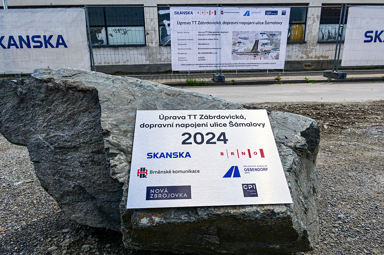 Poklepáním základního kamene byly dnes zahájeny práce na rozšíření ulice Šámalovy a úpravě tramvajové trati v Zábrdovické. Trvat mají 2 roky a vyjdou na bezmála 138 milionů korun bez DPH. Na výstavbě s městem spolupracuje společnost Nová Zbrojovka, která zajistila projektovou dokumentaci a stavební povolení, převedla na město potřebné pozemky a podílí se na financování stavby příspěvkem ve výši 55 procent celkových vynaložených nákladů. Zhotovitelem je společnost Skanska.