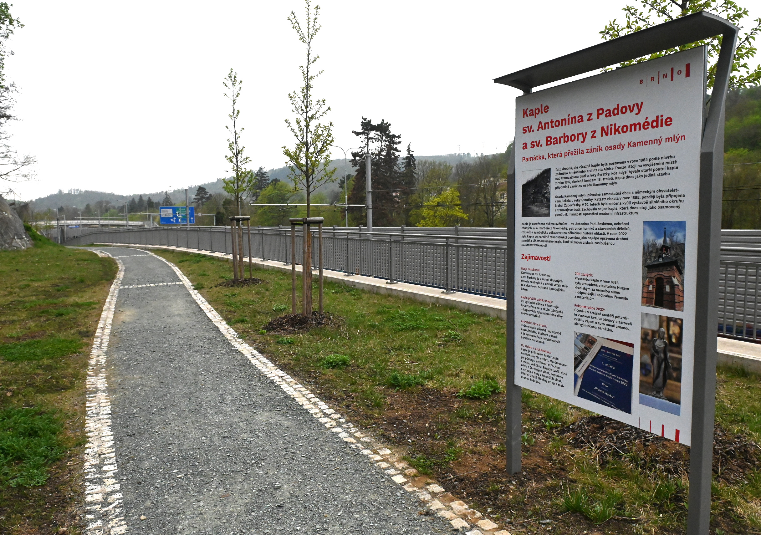 „Kaple byla dříve velice těžko dostupná, kdežto dnes přímo k ní vede nový chodník,“ doplnil radní pro dopravu Petr Kratochvíl. Není to ovšem jediná nová komunikace pro pěší či cyklisty, která v této lokalitě vznikla. „Součástí projektu bylo například vybudování nové stezky pro cyklisty a pěší na levém břehu Svratky nebo dvou lávek, po kterých lidé bezpečně překonají rušnou komunikaci. Pak se můžou vydat třeba po třech nových schodištích přes Wilsonův les k Masarykově čtvrti. Toto propojení zde dosud úplně chybělo. Rozvojem lokality se budeme zabývat i nadále, rádi bychom ji cyklisticky spojili s Anthroposem, doplnili další mobiliář, ale taky například podpořili vznik workoutového hřiště nebo občerstvení,“ nastínil Kratochvíl.
