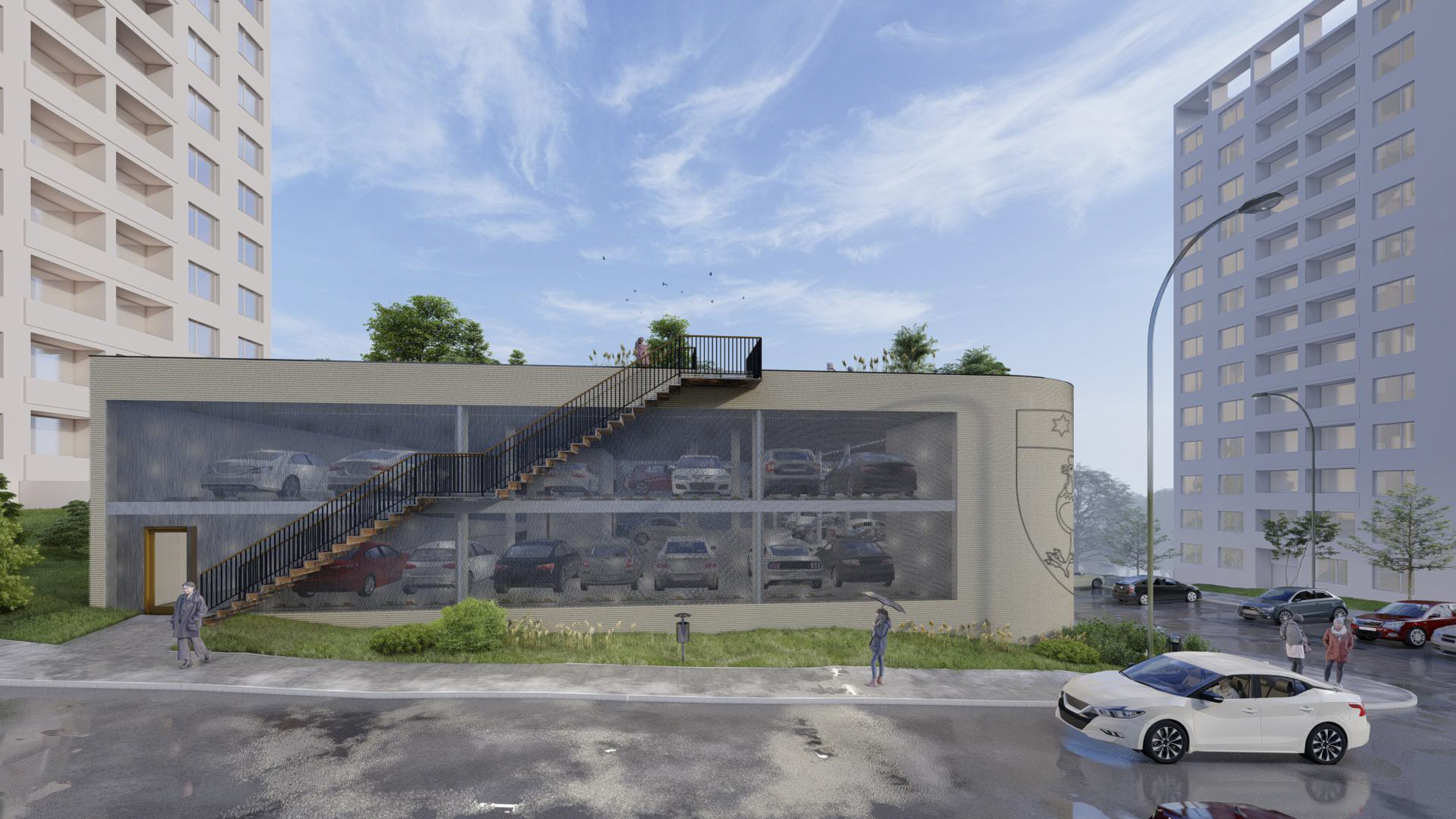 Vedení Kohoutovic již má vypracovaný architektonický návrh parkovacího domu. „Bylo pro nás důležité, aby nová stavba zapadla co nejvíce do okolního prostředí. V blízkosti se nachází nejen bytové domy, ale také zeleň a les. Budova bude kopírovat zdejší členitý terén a zelená střecha ji bude izolovat. Dispoziční uspořádání je jednoduché a účelné – každé patro budovy bude mít svůj vjezd a výjezd,“ vysvětlil starosta městské části Brno-Kohoutovice Jakub Hruška.