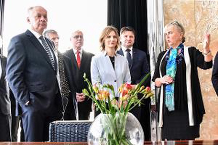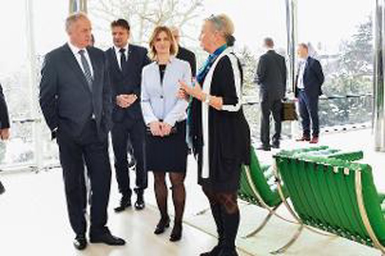 Po návštěvě Nové radnice se slovenský prezident spolu s brněnskou primátorkou odebrali do vily Tugendhat, kde slavnostně zahájili výstavu kostýmů z filmu Skleněný pokoj, který se v této funkcionalistické památce natáčel.