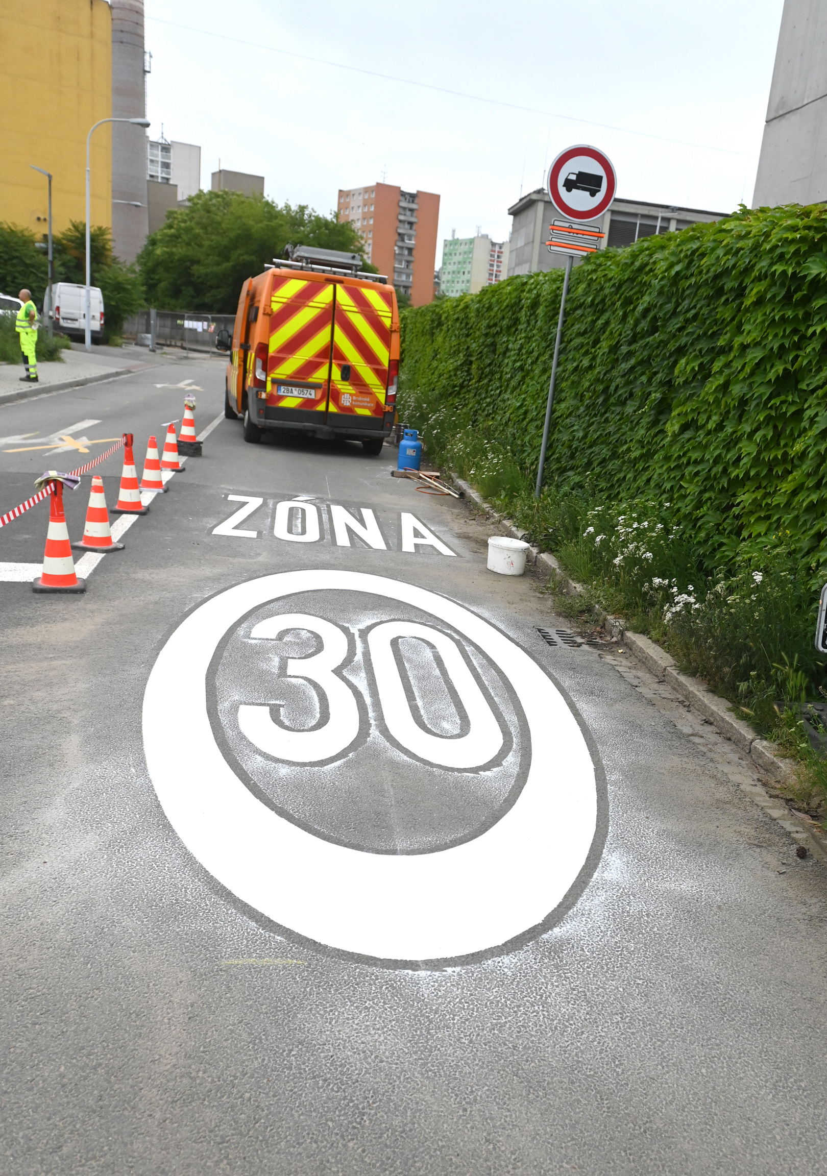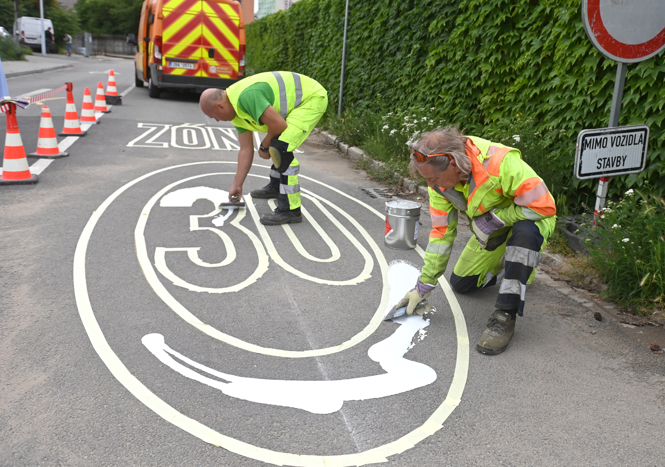 „Data nám jasně ukazují, že mají zóny se sníženou rychlostí vozidel na max. 30 km za hodinu pozitivní vliv na bezpečnost. Rádi bychom toto opatření ještě více zdůraznili, aby bylo pro řidiče nepřehlédnutelné. Proto začínáme s realizací vodorovného dopravního značení, a to ve všech již zavedených zónách 30. Jako první přišla na řadu v úterý 4. června ulice Rybářská u křižovatky s ulicí Poříčí,“ dodal radní pro oblast dopravy Petr Kratochvíl.