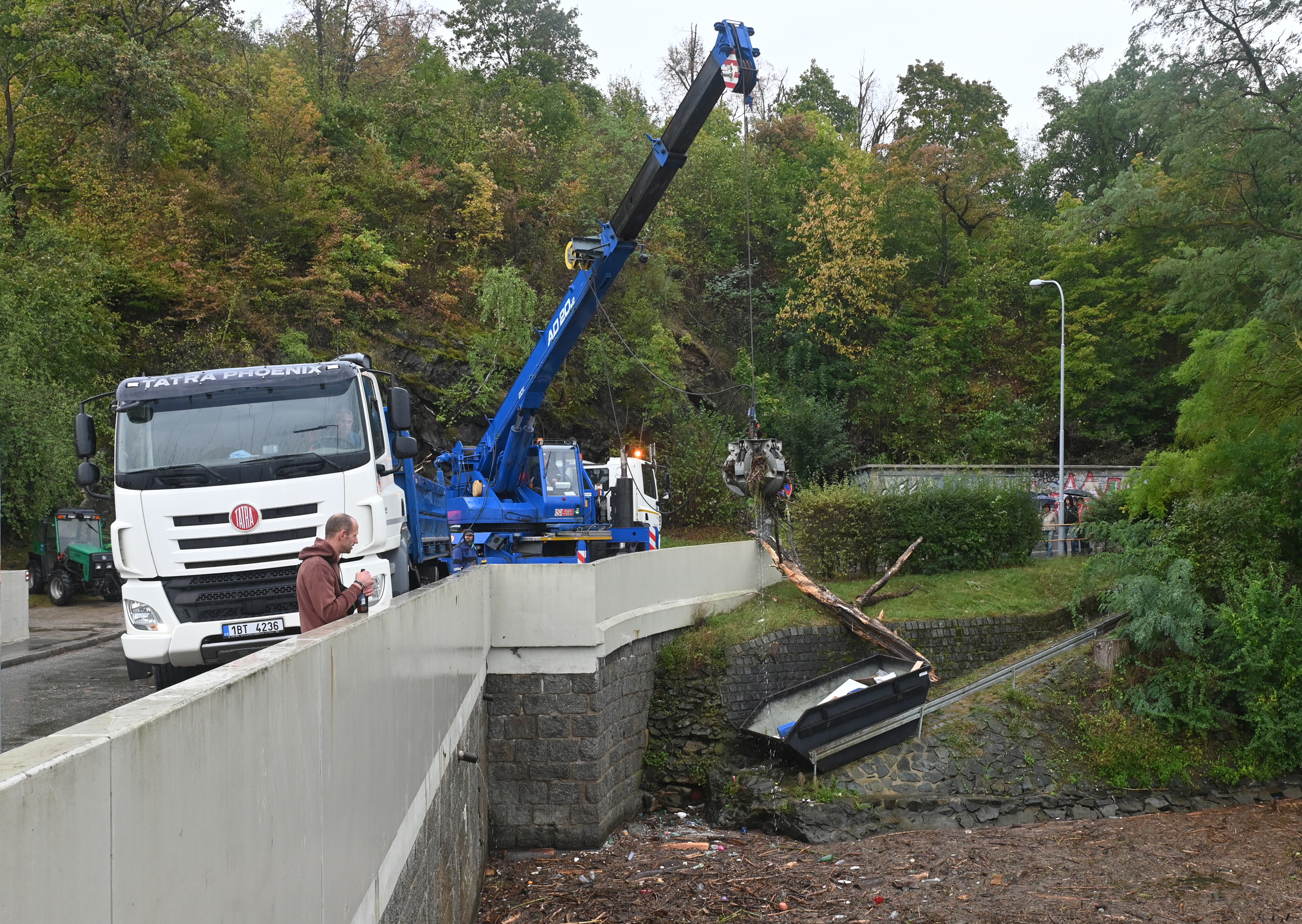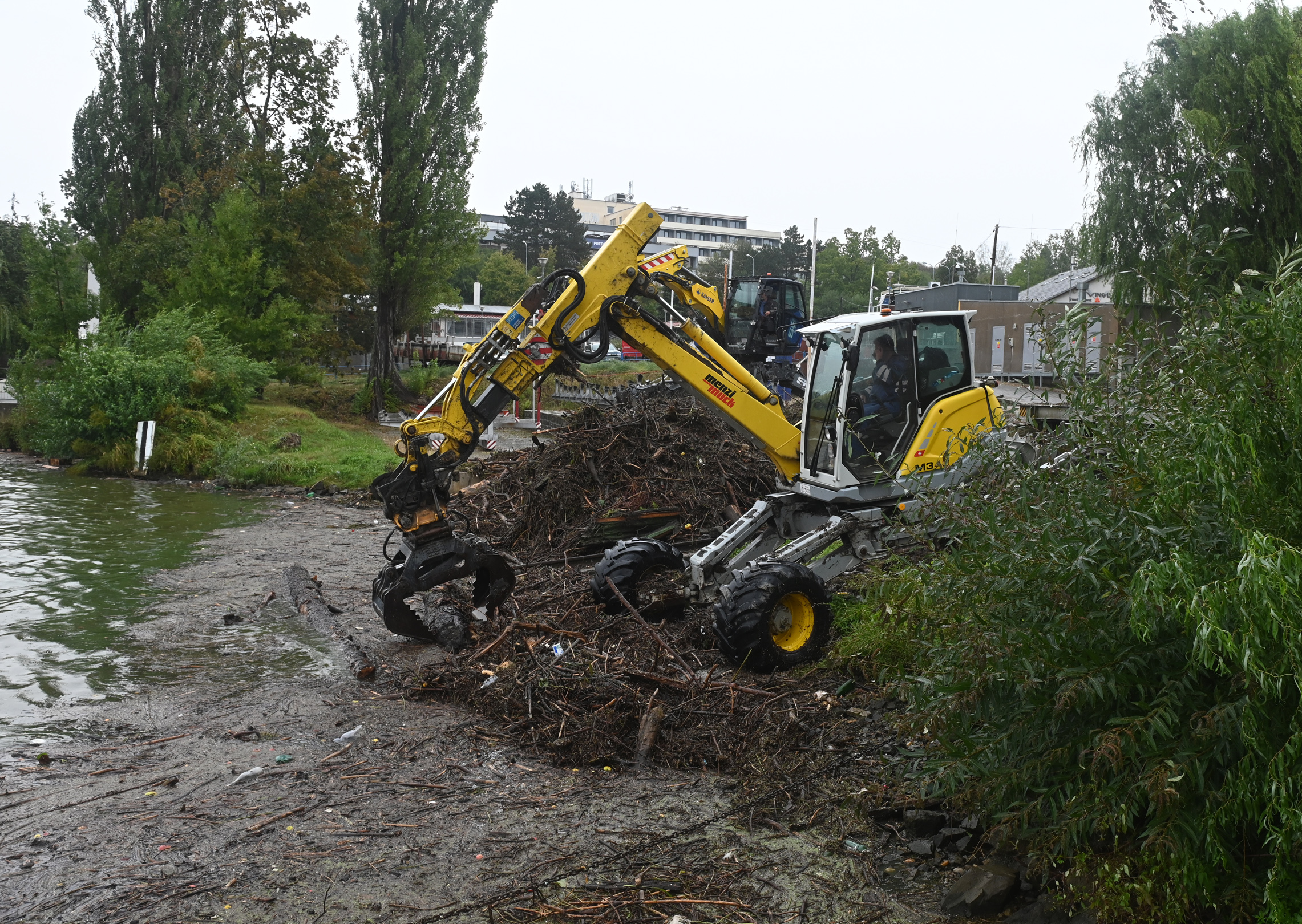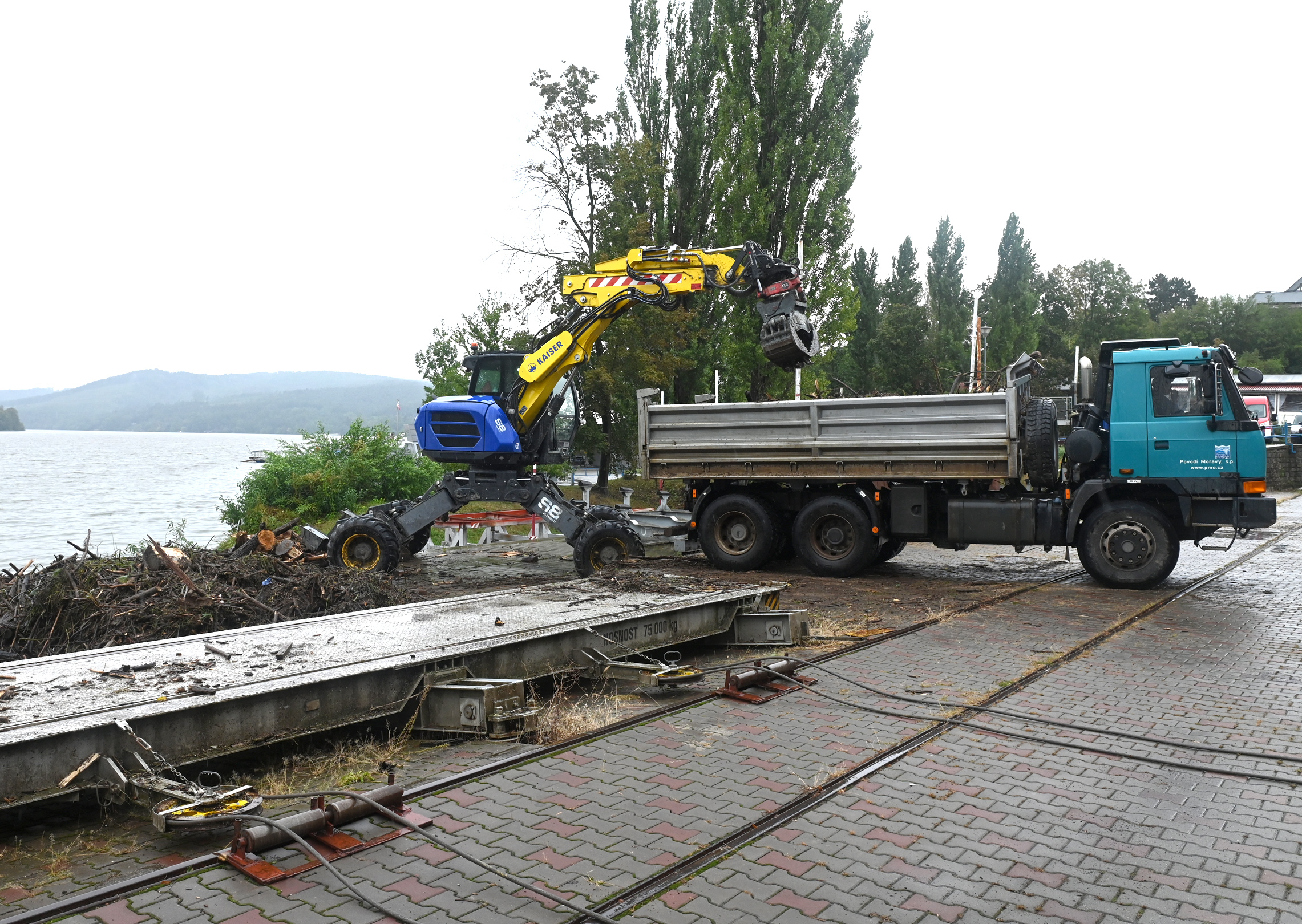Na přehradě i na řece Svratce od brzkého rána probíhá odklízení dřeva přímo z vody, tak aby při případném upouštění přehrady nepůsobily problémy dál po proudu. Kmeny z vody se tahají pomocí člunů i bagru s až 30metrovým ramenem. Pomáhá i dron. Na pracích se podílejí OHLA jako zhotovitel protipovodňových opatření na Svratce, město, Městská policie Brno i Policie ČR, HZS JMK a Povodí Moravy.
