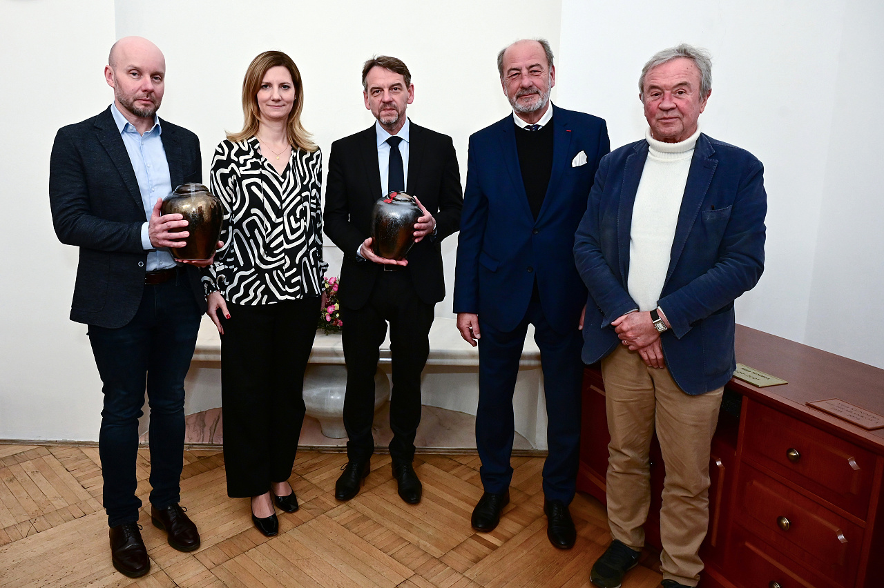 Manželé Věra a Milan Kunderovi, kteří od roku 1975 trvale žili ve Francii, se symbolicky vrátili do Brna. Jejich ostatky, které z Paříže přivezli nakladatel Antoine Gallimard, jenž je vykonavatelem poslední vůle manželů Kunderových, a bývalý velvyslanec ČR v Paříži Michal Fleischmann, byly v pátek 17. ledna 2025 předány primátorce města Brna Markétě Vaňkové a generálnímu řediteli Moravské zemské knihovny Tomáši Kubíčkovi.