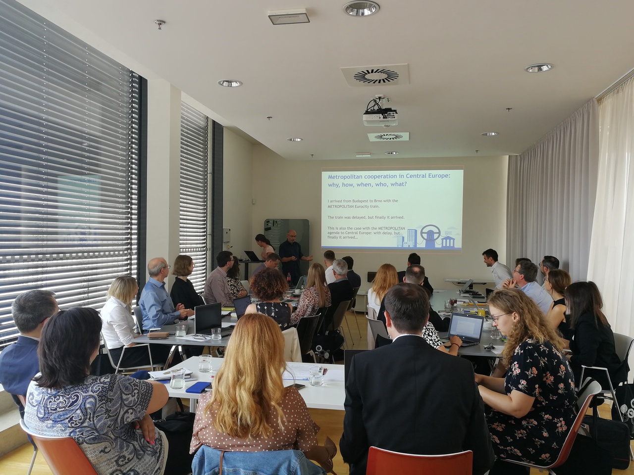 Setkání se zúčastnilo 30 zástupců projektových partnerů. Zazněly zde příspěvky odborníků na metropolitní problematiku, kteří účastníky provedli historií vývoje metropolitní spolupráce v jejich oblastech a ve střední Evropě. Účastníci byli seznámeni se způsobem práce v průběhu následujících let i se základními organizačními aspekty, které je nutné v rámci tak rozsáhlého projektu dodržovat.