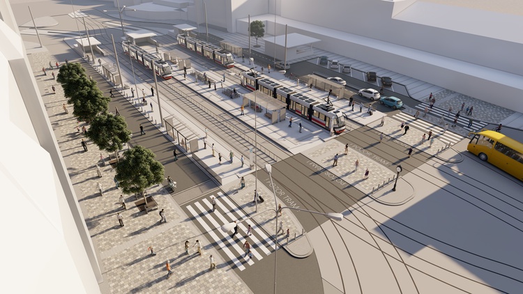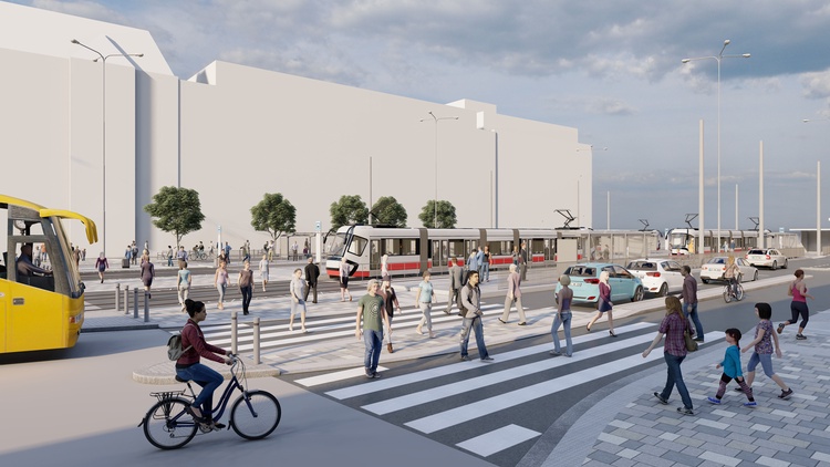U hlavního nádraží musí zůstat zachován průjezd autobusů k nádraží u Grandu, z tohoto důvodu sice zůstane zábradlí na tramvajovém ostrůvku, ale část u vchodu do nádražní budovy bude odstraněna a vznikne zde místo pro přecházení. Na protější straně, tedy u KFC, bude provoz vozidel kromě dopravní obsluhy, veřejné hromadné dopravy a cyklistů omezen, takže půjde odstranit zábradlí na tramvajovém ostrůvku, které tvoří prostorovou bariéru. U KFC budou také odstraněna parkovací místa s tím, že vyhrazená místa budou kompenzována v blízkém okolí.