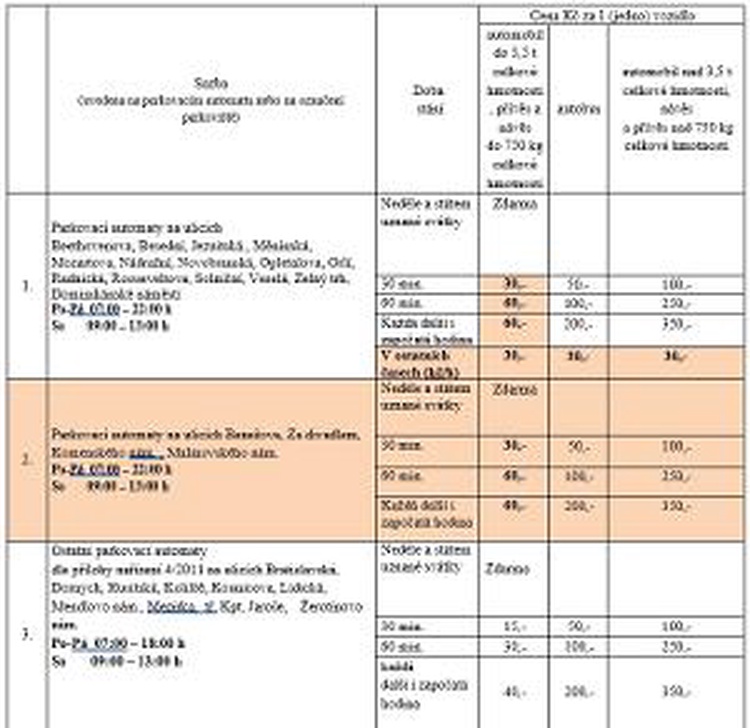 Z nočního zpoplatnění jsou však vyňaty čtyři oblasti: Benešova, Za Divadlem, Komenského a Malinovského náměstí.