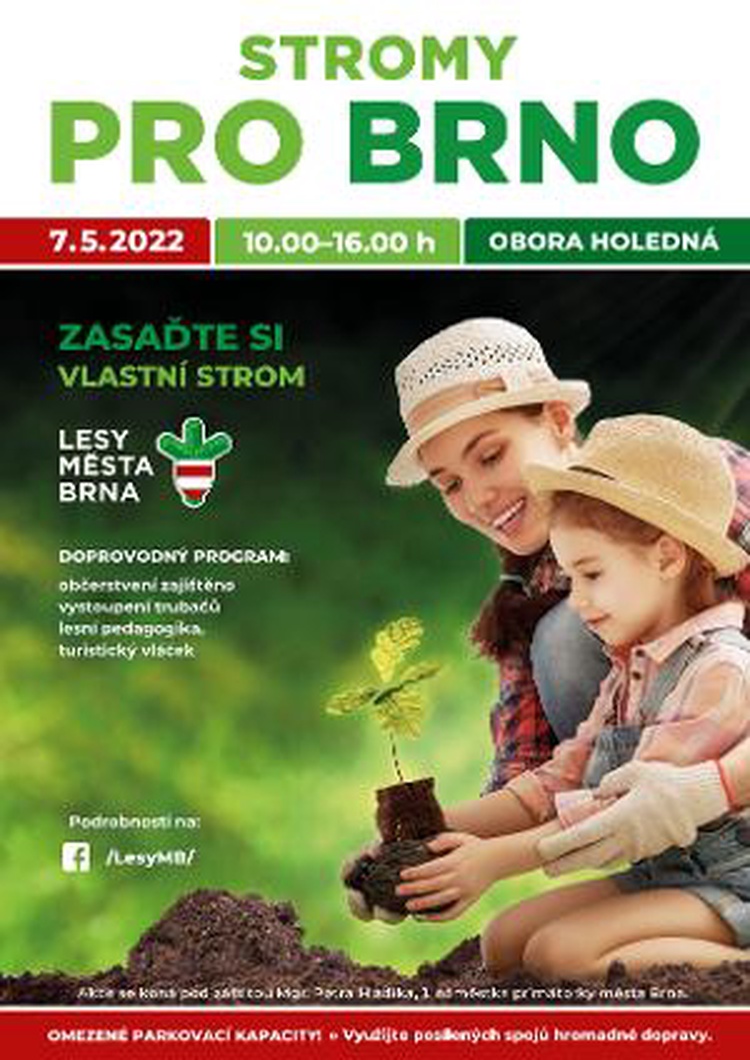 Sázíme stromy pro Brno. Tak se jmenuje akce, která se uskuteční v sobotu 7. května 2022 v oboře Holedná. Jejím cílem je vysadit na předem určených místech co nejvíce sazenic stromů.